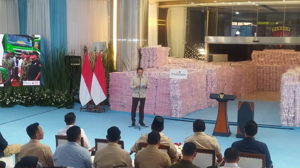 Penyerahan ini disampaikan Jaksa Agung ST Burhanuddin dalam acara penyerahan uang hasil denda atas pelanggaran administratif kawasan hutan yang digelar di Jakarta, Rabu (24/12). Kejaksaan Agung merupakan bagian dari Satgas PKH yang bertugas melakukan penertiban kawasan hutan.