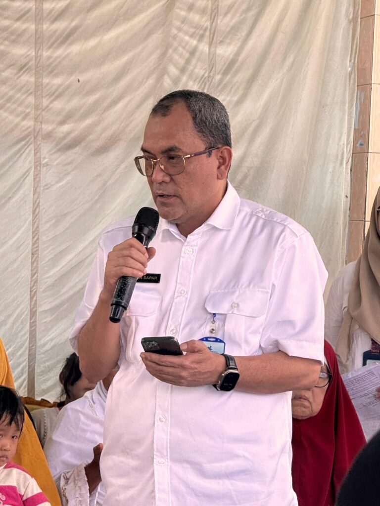 Direktur Utama PERUMDAM TKR Sofyan Sapar menyampaikan tujuan Program Air Bersih Gratis kepada masyarakat Desa Tanjakan Mekar (19/12) (Dok Foto : Danny M.P / jurnal8.id)
