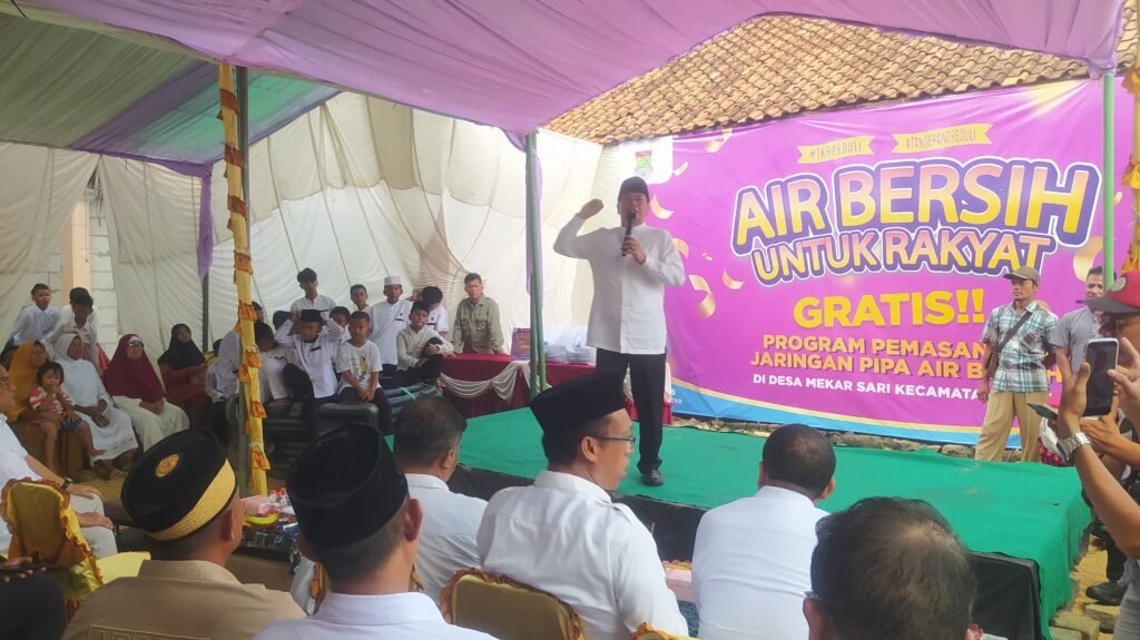 Tangerang – Perusahaan Daerah Air Minum Tirta Kerta Raharja Kabupaten Tangerang (PERUMDAM TKR) mensosialisasi sekaligus melaksanakan program pemasangan jaringan air bersih gratis secara simbolis bagi warga Desa Tanjakan Mekar dan wilayah sekitar Tempat Pembuangan Akhir (TPA) Jatiwaringin, kecamatan Rajeg pada Jumat Sore (19/12). Program ini merupakan bagian dari upaya pemenuhan hak dasar masyarakat atas air bersih yang layak, aman, dan tidak tercemar.