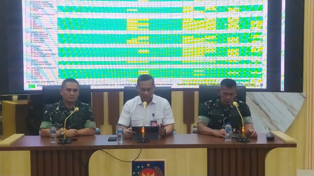 Dalam konferensi pers tersebut, Satgas melaporkan bahwa dari total 52 kabupaten/kota yang terdampak bencana banjir bandang di Aceh, Sumatera Utara, dan Sumatera Barat, sebanyak 27 kabupaten/kota telah kembali berfungsi normal. Sementara itu, 15 kabupaten/kota lainnya berada dalam kondisi mendekati normal.